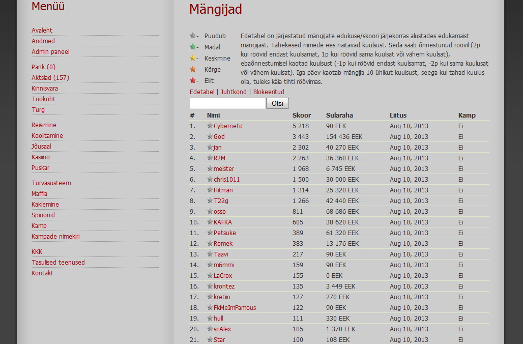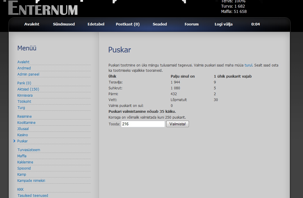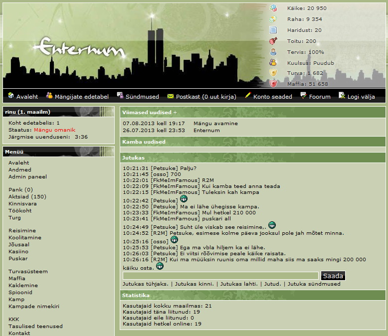 Mängus on sul võimalik teenida raha ning osta erinevaid asju selle eest. Raha teenimiseks on mängus mitmeid võimalusi: röövimine, töötamine, puskari valmistamine, müümine, aktsiad. Sul on võimalik omada mängus kinnisvara, maffiat, relvi, aktsiaid jpm. Oma kinnisvara ning tervise kaitsmiseks röövimiste/rünnakute eest, on sul võimalus palgata turvamehi kinnisvara valvama või osta relvi. Maffia abil saad sa ka ise käia teisi röövimas ning teenida sellepealt raha. Sul on võimalus luua ka oma kamp kus sa saad värvata teatud arv liikmeid. Kambas olles on sul mitmeid eeliseid: tasuta kamba kaitse röövide/rünnakute vastu, võimalus kasutada kamba abiväge röövimisel (nõuab mõnevõrra rohkem käike).